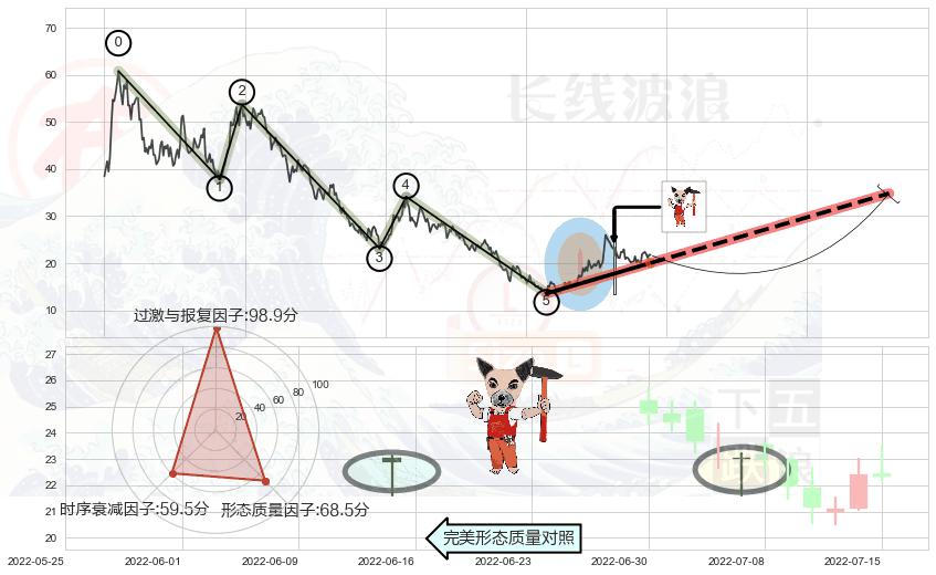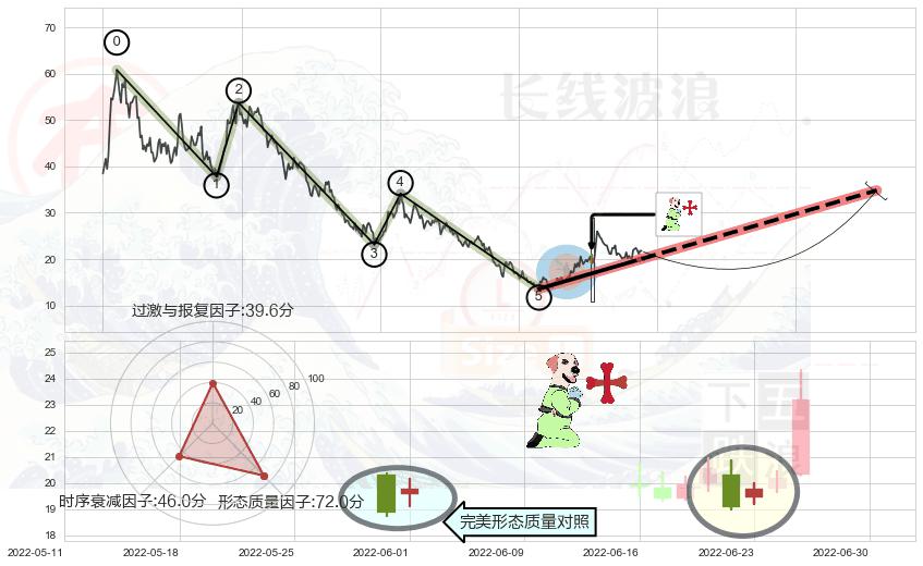 ➢ 看涨(低位)倒锤头线 🔜 波浪理论下跌浪:浪5反弹拐点 综合量化分数:52.11 【中性】