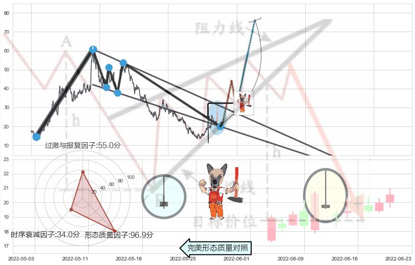 ➢ 🕰 价格走势在2022-06-14至2022-06-14期间形成单针探底(定海神针),残存影响值:2.34