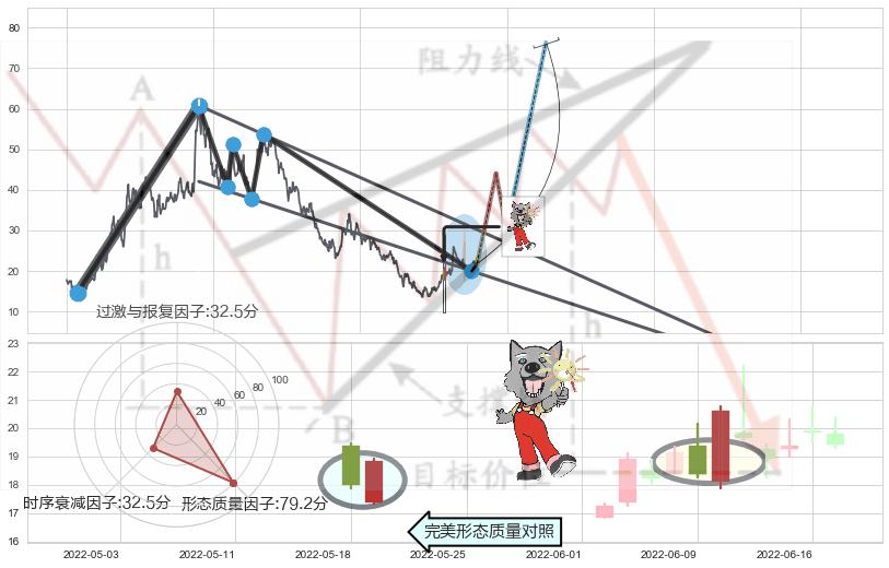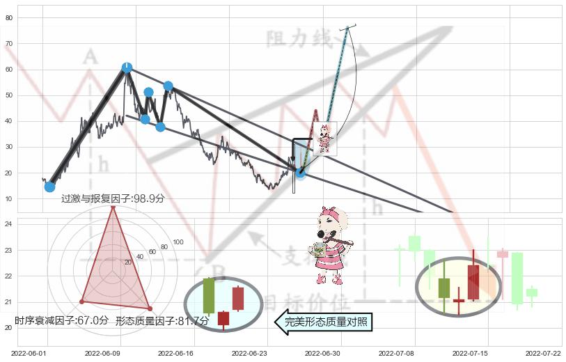 ➣ 早晨之星(黎明之星) + 降楔型临近阻力猜想转换支撑上涨信号叠加后【信号初始稳固度】偏低,【看多】信号叠加【可信度影响降权】