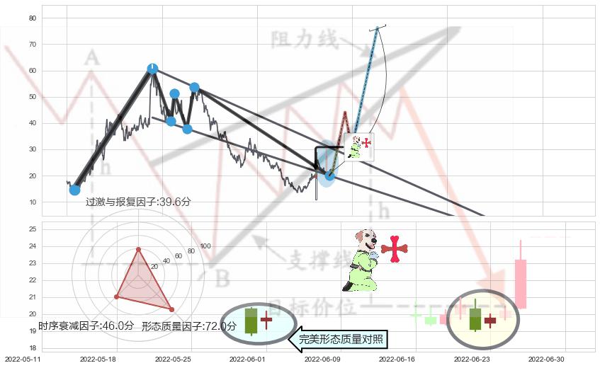 ➢ 🕰 价格走势在2022-06-09至2022-06-10期间形成曙光初现形态,残存影响值:2.09