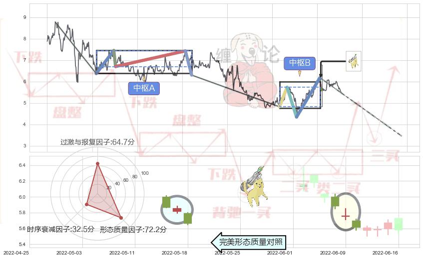 ➣ 看跌(高位倒锤头)流星线 + 缠论中枢点破位中枢B支撑下拉信号叠加后【目标达成率】中等,【看空】信号叠加【存续影响中等】