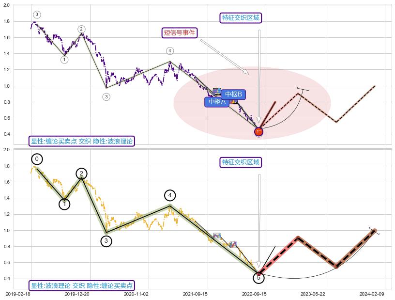 ➣ 【中枢B】:2022-01-21-2022-02-22,中枢由5笔构成,共19交易日, ZG=0.8400, ZD=0.8100