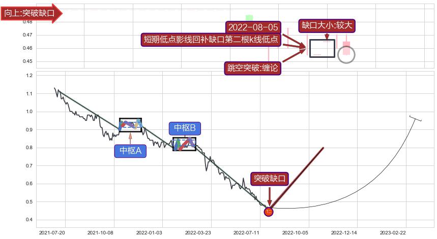 ➢ 低点影线(2022-08-12: 0.45500 )→回踩→第二根k线低点(2022-08-05: 0.46500 )