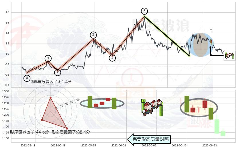 ➢ 🕰 价格走势在2022-06-16至2022-06-22期间形成下降三部曲(降势三鹤),残存影响值:-4.82