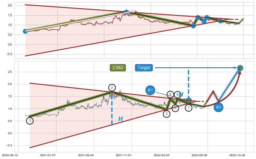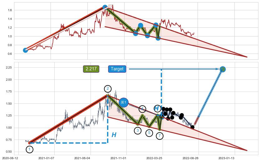 ➢ 【买1】: 激进型 买点 →(2022-03-22: 1.2273 )形成突破降🚩楔型【整理】形态