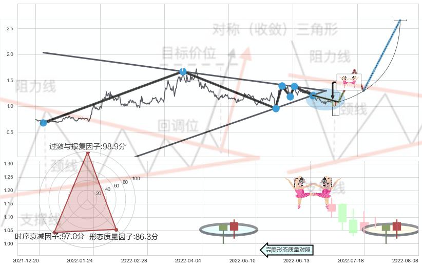 ➢ 曙光初现形态 🔜 上升对称三角整理临近阻力猜想转换支撑上涨 综合量化分数:53.32 【中性】