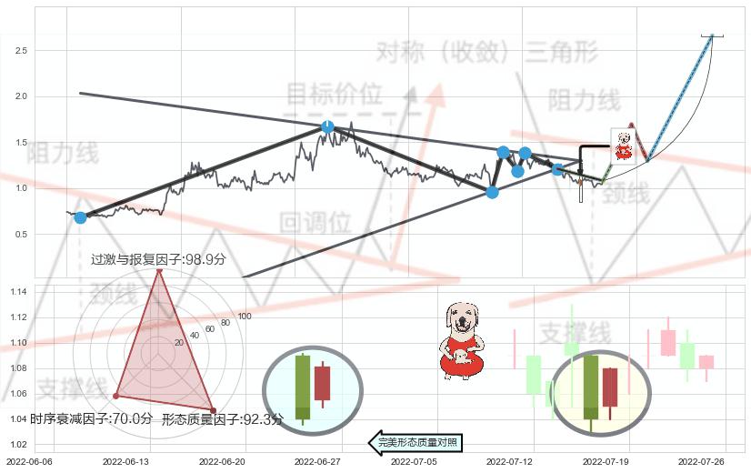 ➢ 锤头线(锤子线) 🔜 上升对称三角整理临近阻力猜想转换支撑上涨 综合量化分数:54.41 【偏多】
