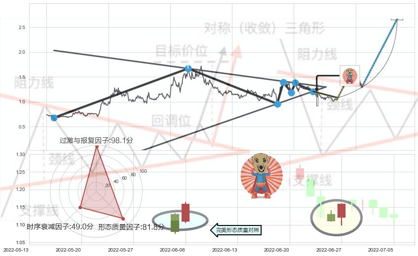 ➢ 🕰 价格走势在2022-06-14至2022-06-14期间形成单针探底(定海神针),残存影响值:2.42
