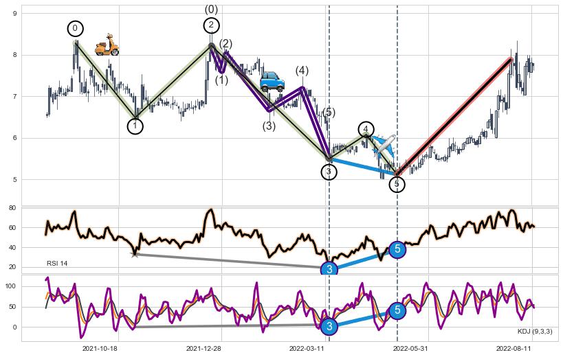 ➢ 🕰 价格走势在2022-06-08至2022-06-14期间形成低档五阳线,残存影响值:0.53