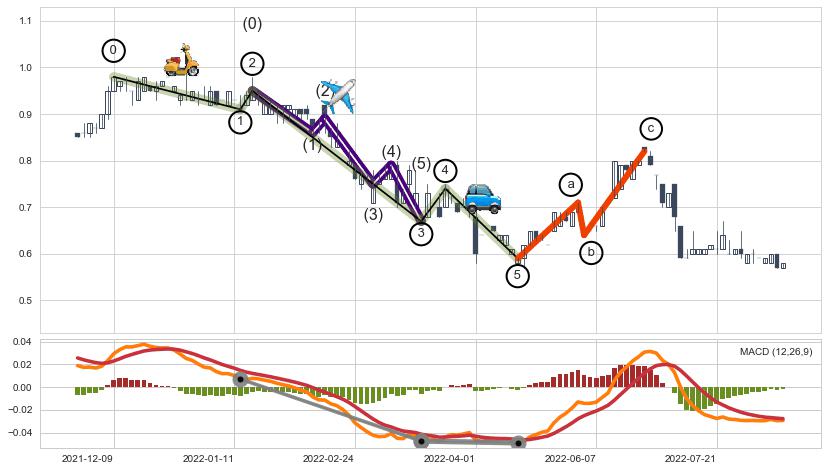 ➣ 波浪理论:猜想达到c点后小回调终止反转上涨 → 上涨 → 【拐点】临近 → 阶段均值回复结束后继续大周期趋势跟踪