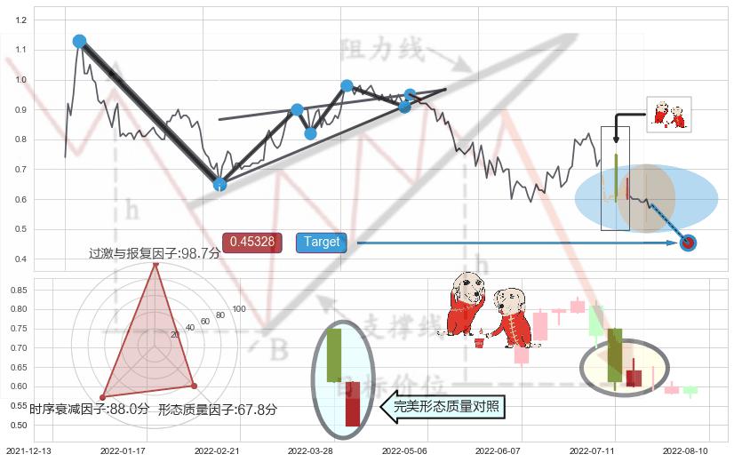 ♘ 阻力价格位0.8464,可信任强度56.44%,距离最后交易2022-08-11形成的收盘价格0.5800相差 +45.93%