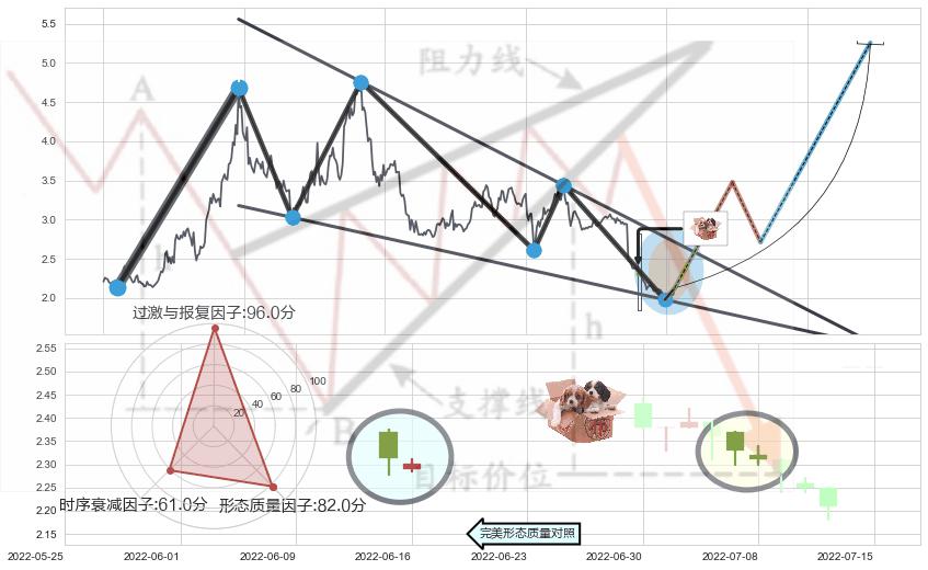➢ 🕰 价格走势在2022-07-07至2022-07-08期间形成底部尽头线(上山虎),残存影响值:2.57