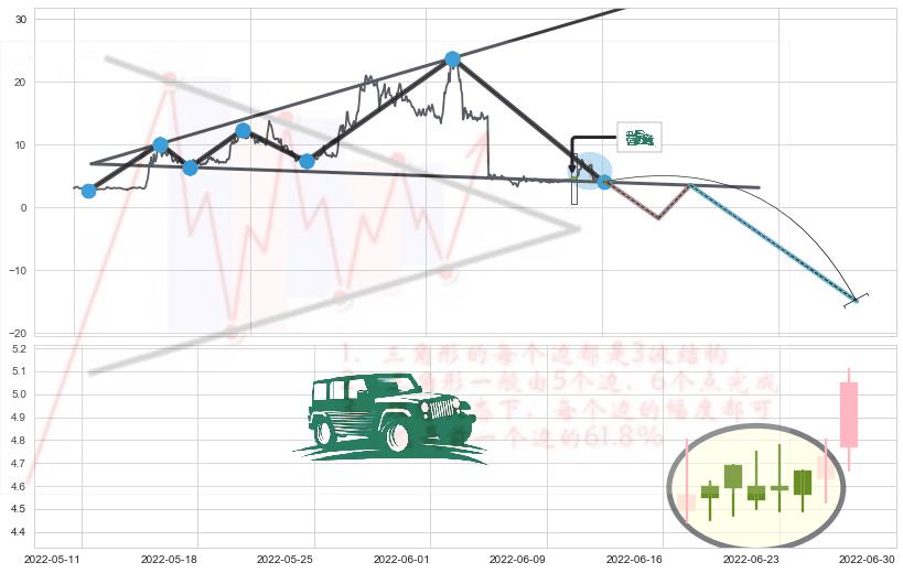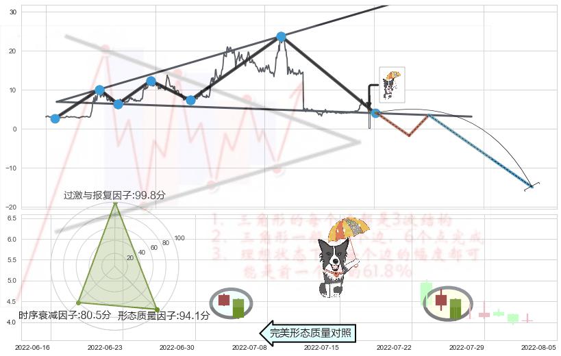 ➣ AI智能: 预测【大方向抉择→空方占优】扩散三角形反转向下突破,预测将在2022-08-16突破颈线