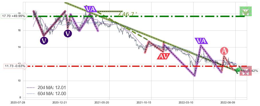 ♘ 支撑价格位11.73,可信任强度72.04%,距离最后交易2022-08-12形成的收盘价格11.80相差 -0.63%