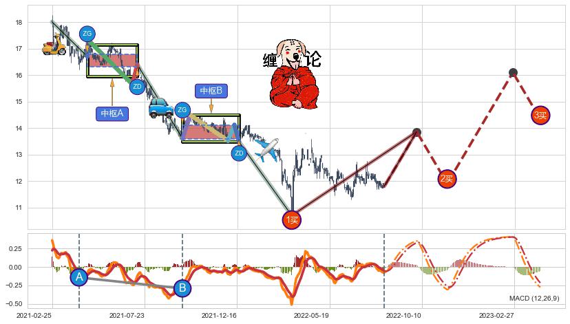 ➣ 缠论买卖点:下降缠中枢AB形成后猜想拐点1买已到达,猜想后续持续拉升(均值回复)