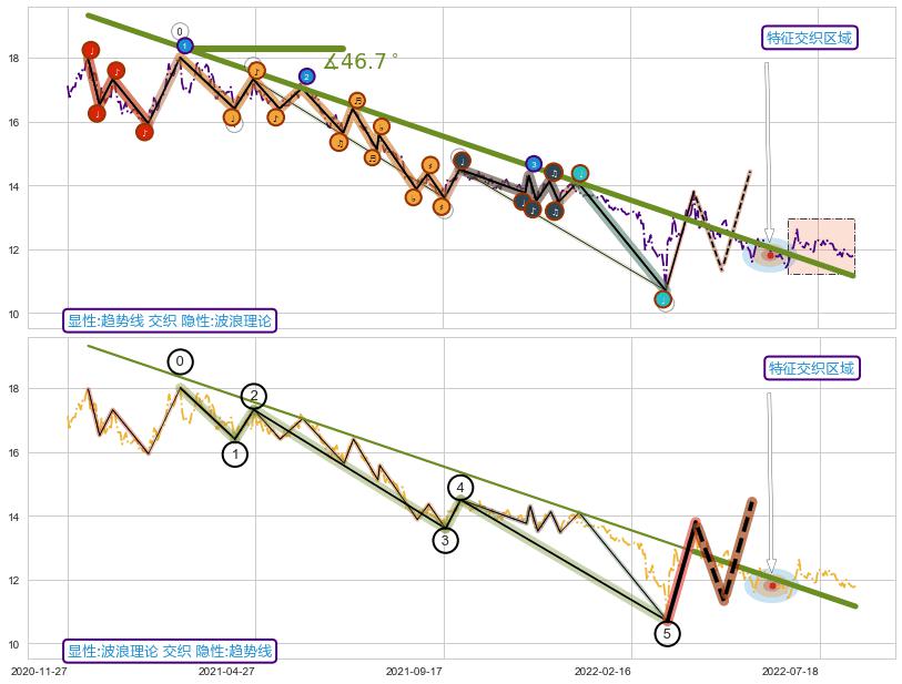 ➢ 2020-12-14-2022-04-04下跌趋势存在反转上涨[机会],其原下跌趋势的阻力位(11.16)已被突破[强支撑信号],原下跌趋势角度: 46.7˚