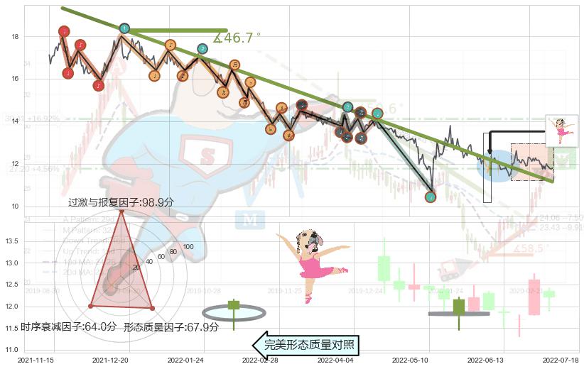 ➣ 2020-12-14-2022-04-04下跌趋势存在反转上涨[机会],其原下跌趋势的阻力位(11.16)已被突破[强支撑信号],原下跌趋势角度: 46.7˚