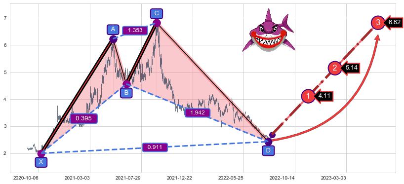 ➣ 已完成【鲨鱼】形态起点X: 2020-10-14, 终点D: 2022-08-03, 共444交易日