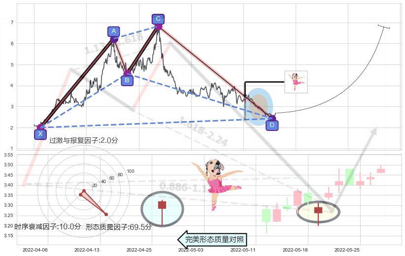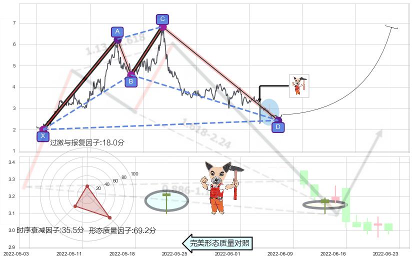 ➢ 上涨螺旋桨形态 🔜 谐波鲨鱼d拐点上涨支撑 综合量化分数:53.28 【中性】