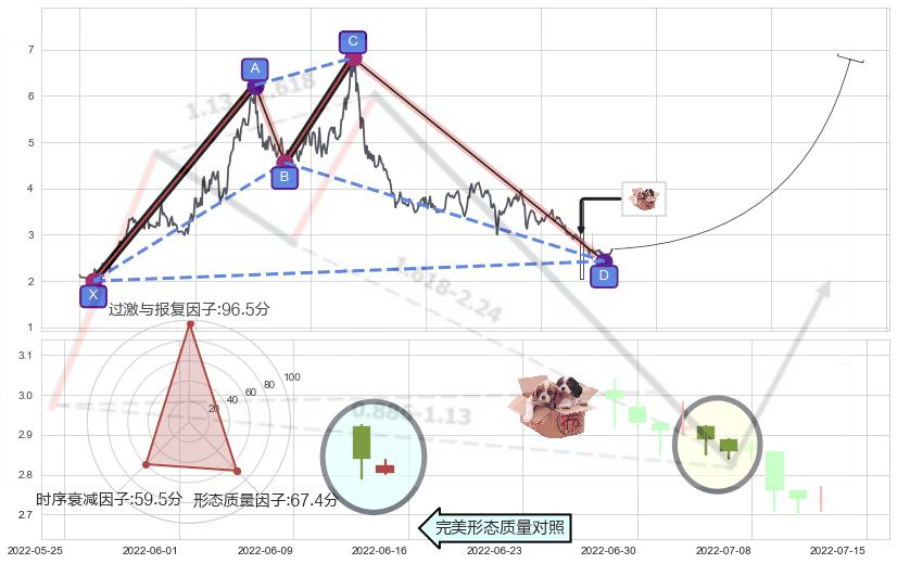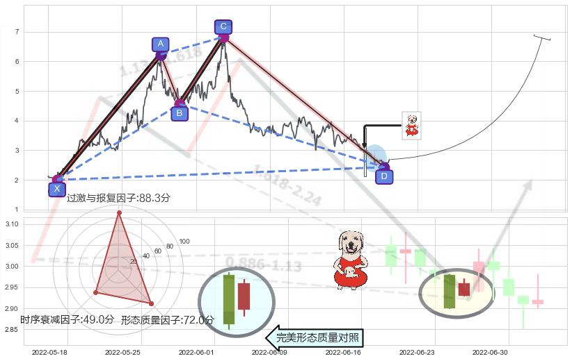 ➢ 曙光初现形态 🔜 谐波鲨鱼d拐点上涨支撑 综合量化分数:61.36 【偏多】