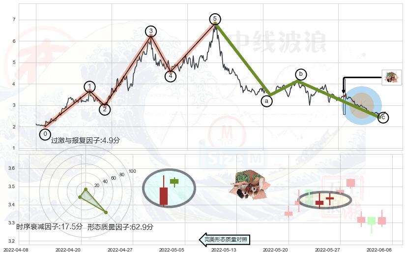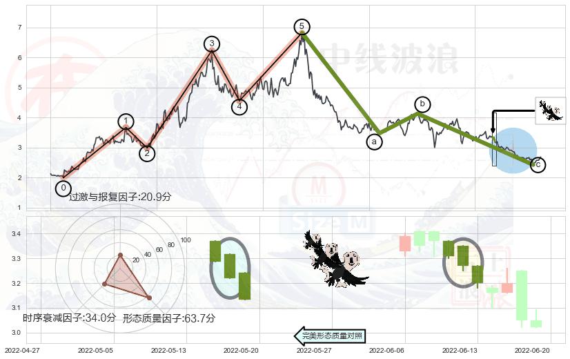 ➣ 下跌螺旋桨 + 波浪理论击穿破位C点继续下跌信号叠加后【信号初始稳固度】中等,【看空】信号叠加【可信度影响中等】