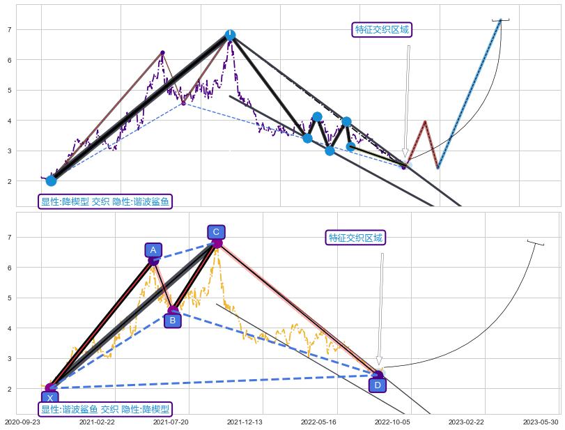 ➢ 已完成【鲨鱼】形态起点X: 2020-10-14, 终点D: 2022-08-03, 共444交易日