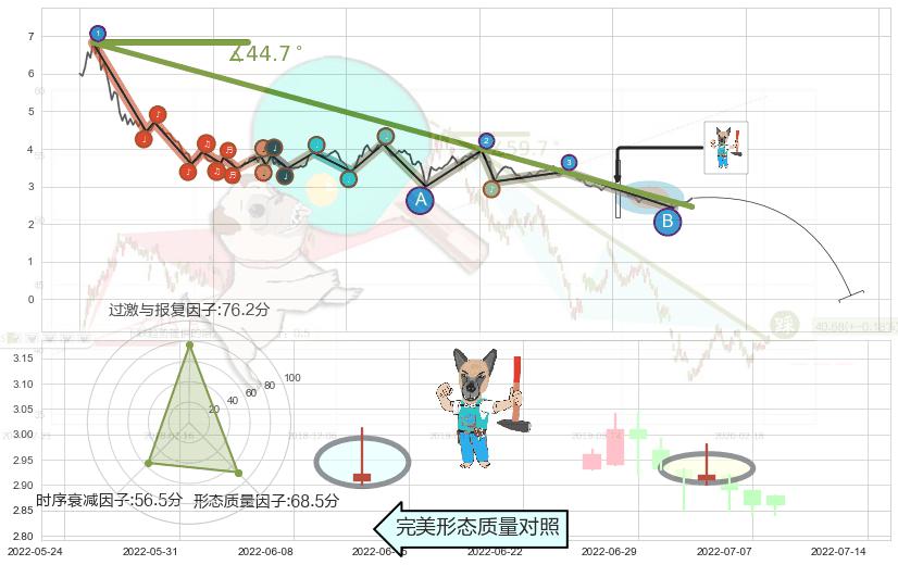 从2021-09-09至2021-12-10,共包含63个交易日,阶段股价下跌-58.75%,阶段股价变动位移路程比: 1 : 2,下跌趋势角度: 72.5