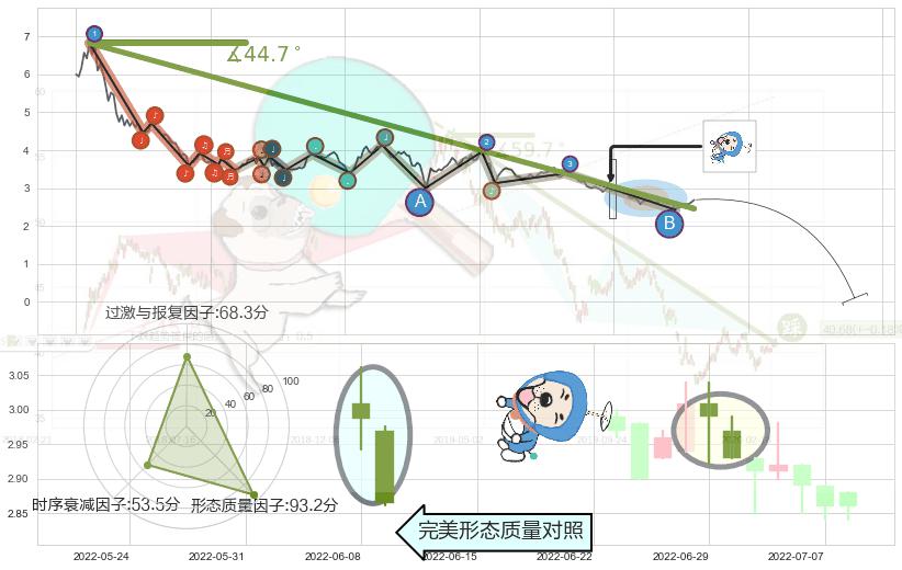 ➢ 🕰 价格走势在2022-07-06至2022-07-07期间形成底部尽头线(上山虎),残存影响值:2.38