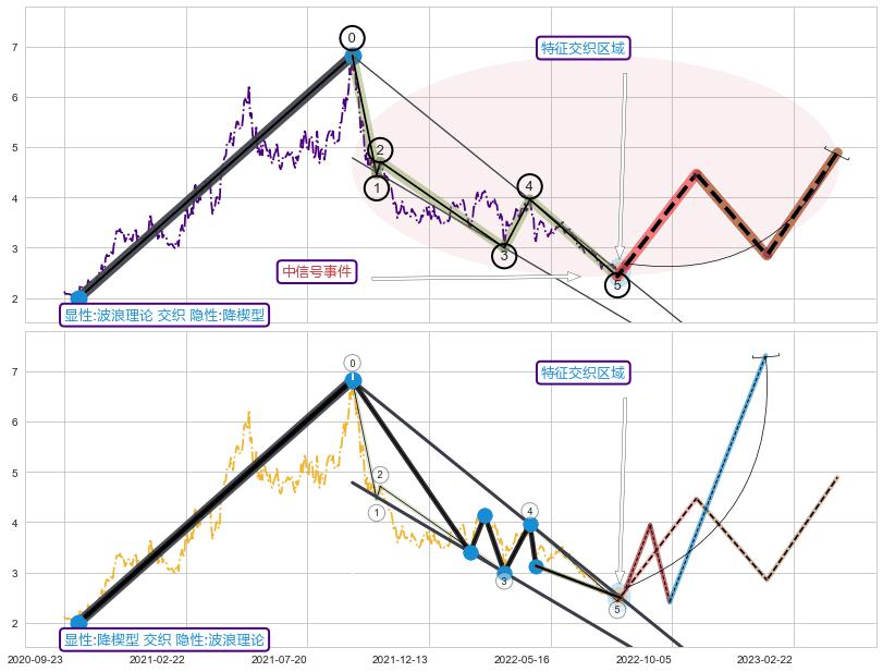 ➢ 波浪理论属【中级别信号事件】降楔型属【长级别信号事件】中长周期组合信号事件,中长事件长度比50.56%