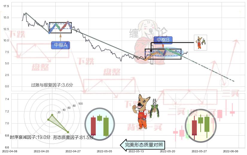 ➢ 下跌镊子线(n形磁铁) 🔜 缠论中枢点破位中枢B支撑下拉 综合量化分数:48.13 【中性】