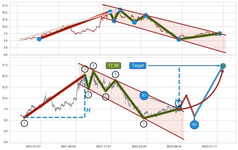 ➣ 最小中继整理涨幅→𝐇: 9.68 (𝐇旗杆的长度:旗杆起点→顶点)