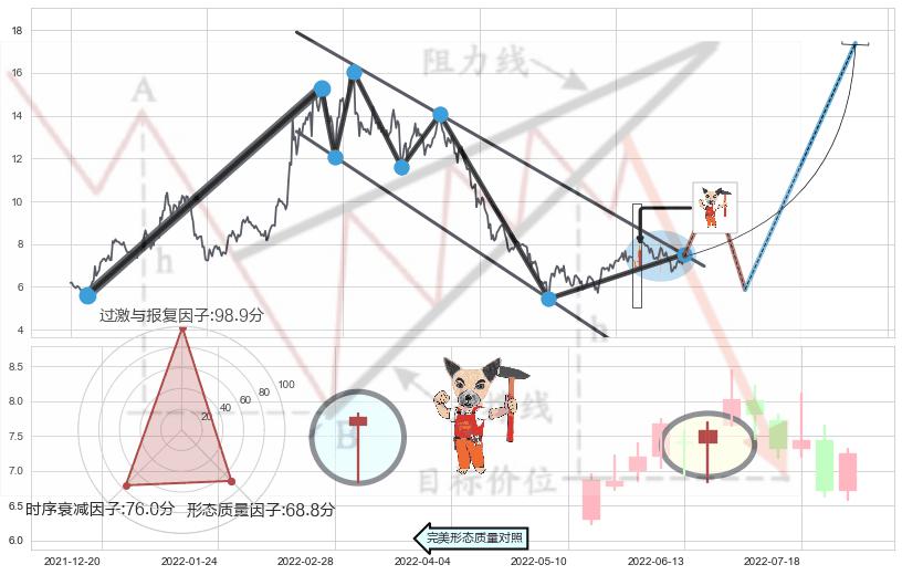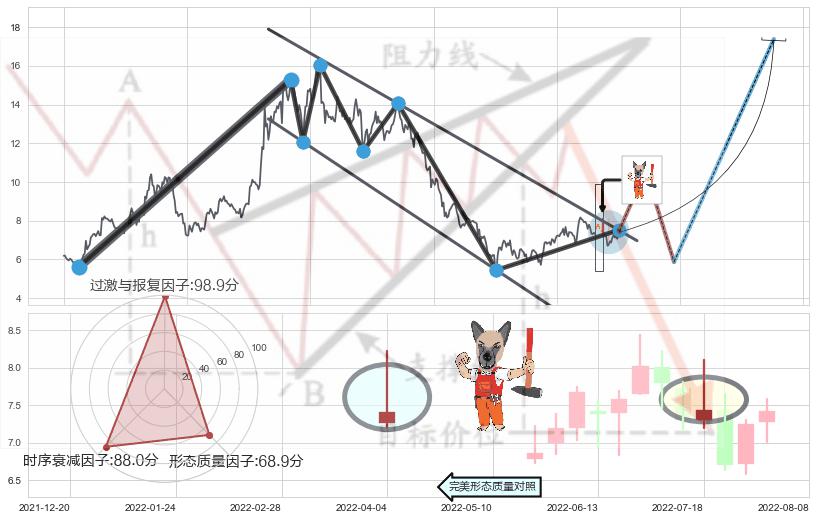 ♘ 支撑价格位7.05,可信任强度84.90%,距离最后交易2022-08-12形成的收盘价格7.42相差 -4.99%