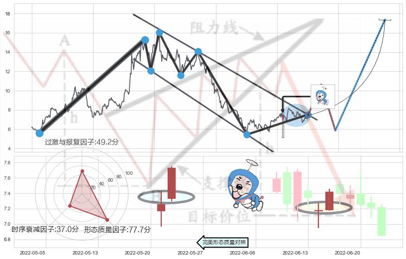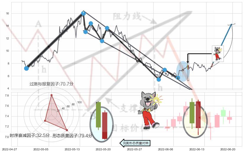 ➢ 🕰 价格走势在2022-06-20至2022-06-20期间形成锤头线(锤子线),残存影响值:6.22