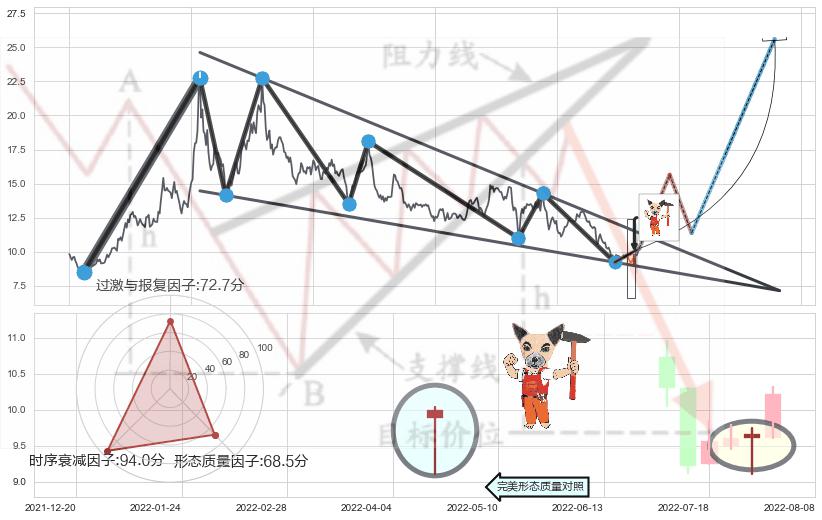 ♘ 阻力价格位12.11,可信任强度74.53%,距离最后交易2022-08-12形成的收盘价格10.22相差 +18.49%