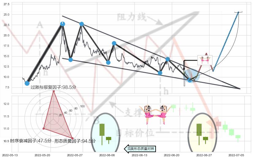 ➢ 单针探底(定海神针) + 降楔型临近阻力猜想转换支撑上涨信号叠加后【反向回撤率】中等,【看多】信号叠加【存续影响中等】