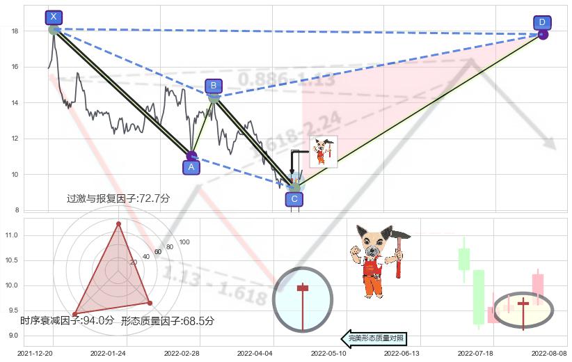 ➢ 未完成【鲨鱼】形态起点X: 2021-09-13, 已到达C点: 2022-08-03, 预测最终D点: 2023-06-09, 共438交易日