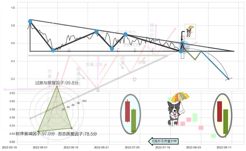 ➣ 【未确认突破,预测即将形成突破】下降三角形整理起点:2021-11-30, 预测突破点:2022-08-15,形态共131交易日