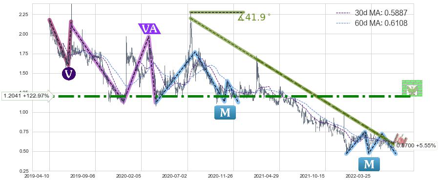➣ 【仅预测突破】最后价格:0.5400与预测突破价格:0.7300→【空间较大】后续最小【反转】第一目标价格→(2022-10-21: 0.9500 )