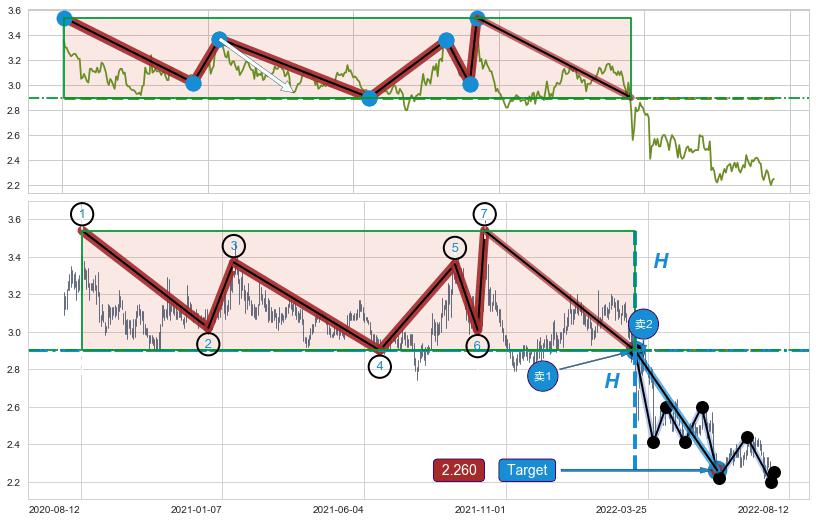 ➣ 【卖2】: 保守型 卖点→(2022-03-22: 2.860 )形成下跌矩形整理突破后的【回抽确认】