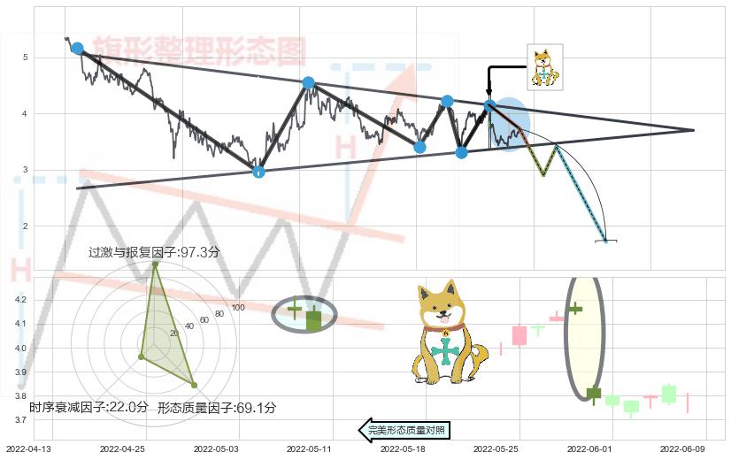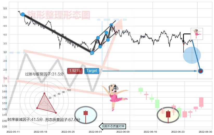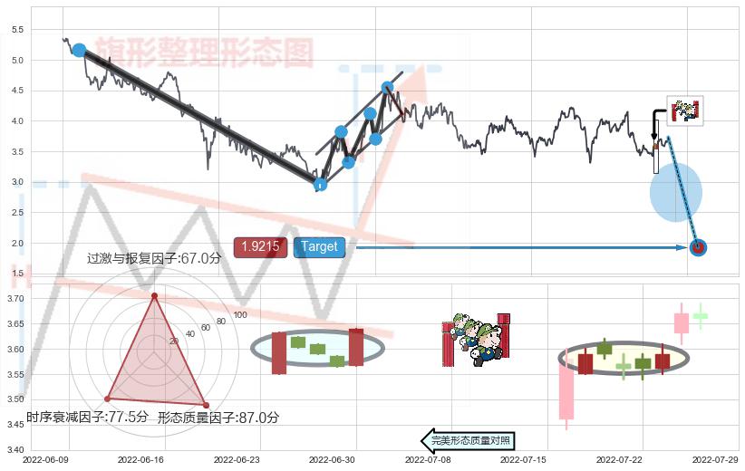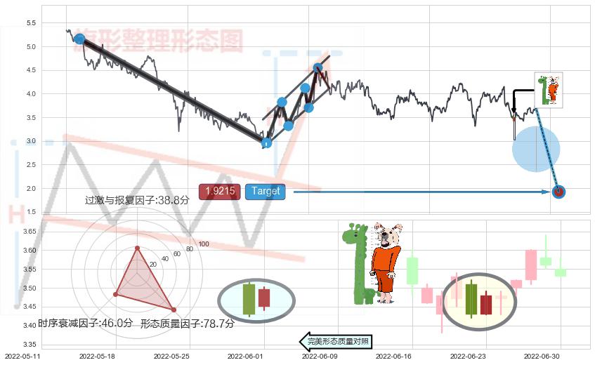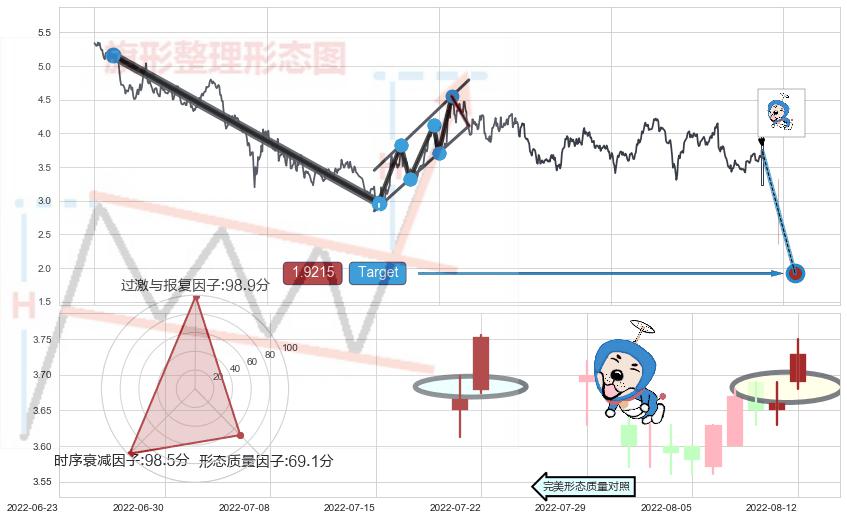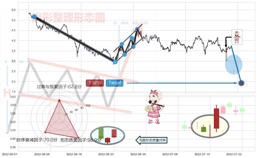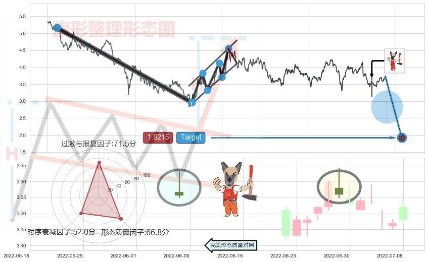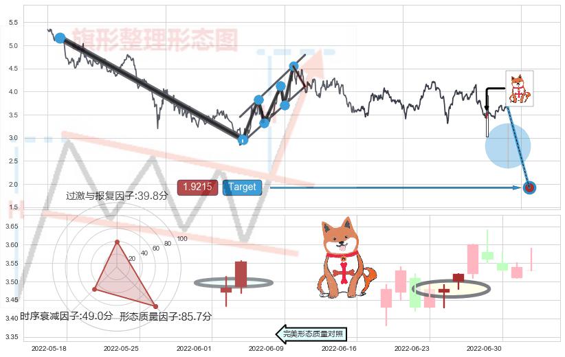 ➢ 中流砥柱形态 🔜 升旗形临近target支撑拐点上涨 综合量化分数:52.23 【中性】