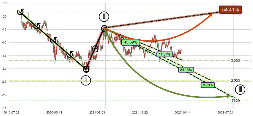 ➣ 2021-07-20到达第❷价格目标位置3.560