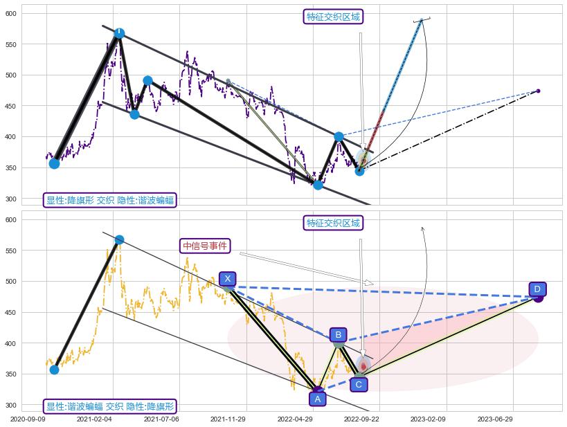 ➢ 谐波蝙蝠属【中级别信号事件】降旗形属【长级别信号事件】中长周期组合信号事件,中长事件长度比43.48%