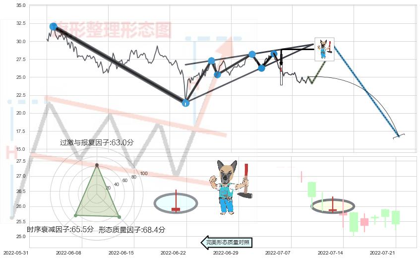 ➢ 【卖1】: 激进型 卖点→(2022-07-08: 27.32 )形成突破升🚩楔型【整理】形态