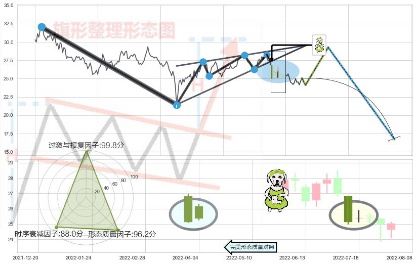 ➢ 🕰 价格走势在2022-08-08至2022-08-08期间形成下降插入线(坠落线),残存影响值:-8.87