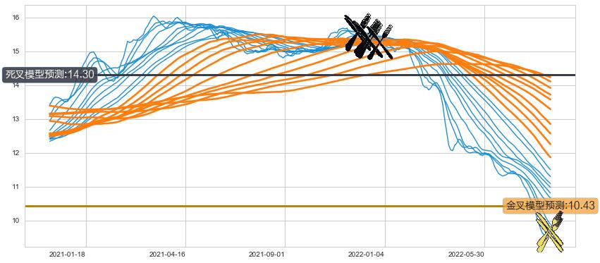 ➢ 40小时均线于(2021-12-16: 15.33)形成【死叉】基于【死叉历史模型】预测死叉后最低波谷价格: 14.43, 死叉后最低价格9.50,已经下跌超出预测最低波谷价格, 预期反弹