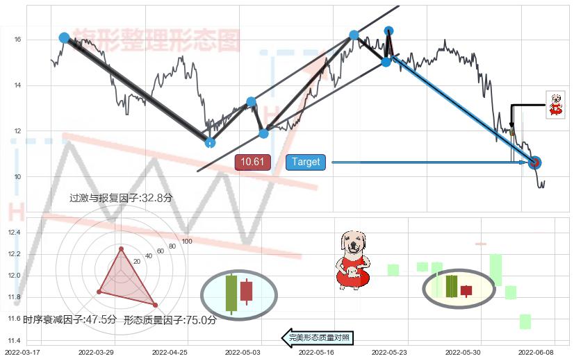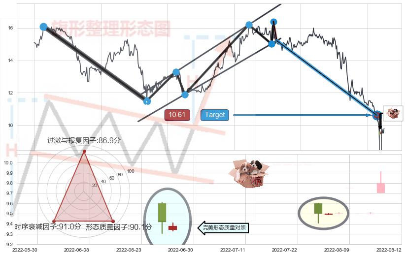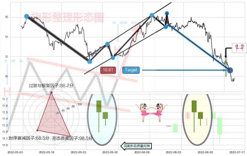 ➢ 【已达成】最小【整理】第一目标价格→(2022-07-13: 10.61 ), 后续继续【整理】下跌动力依然存在,下跌空间适中