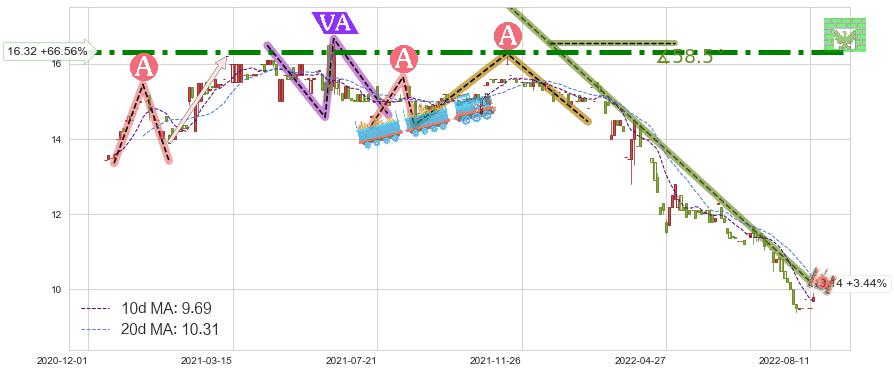 🦴 长线均值回复组合短线趋势跟踪[强阻力信号]2021-06-01-2022-08-12下跌趋势依然成立(下跌趋势跟踪依然存在),短线价格略微上行反弹(均值回复猜想),即将接近下跌趋势提供的未破位阻力价格:10.14。