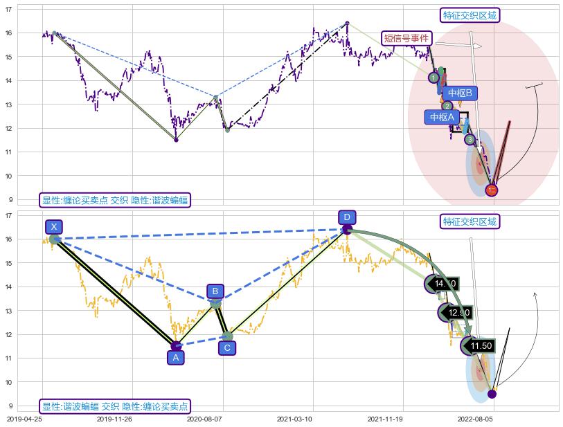 ➢ 【中枢A】:2022-03-16-2022-03-29,中枢由4笔构成,共7交易日, ZG=14.20, ZD=13.80