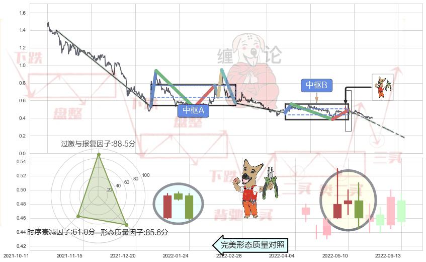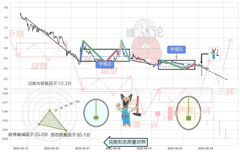 ➢ 下跌镊子线(n形磁铁) 🔜 缠论中枢点破位中枢B支撑下拉 综合量化分数:46.45 【中性】