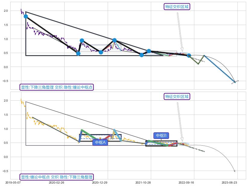 ➢ 下降三角整理与缠论中枢点信号事件周期长度级别相同,同周期信号事件